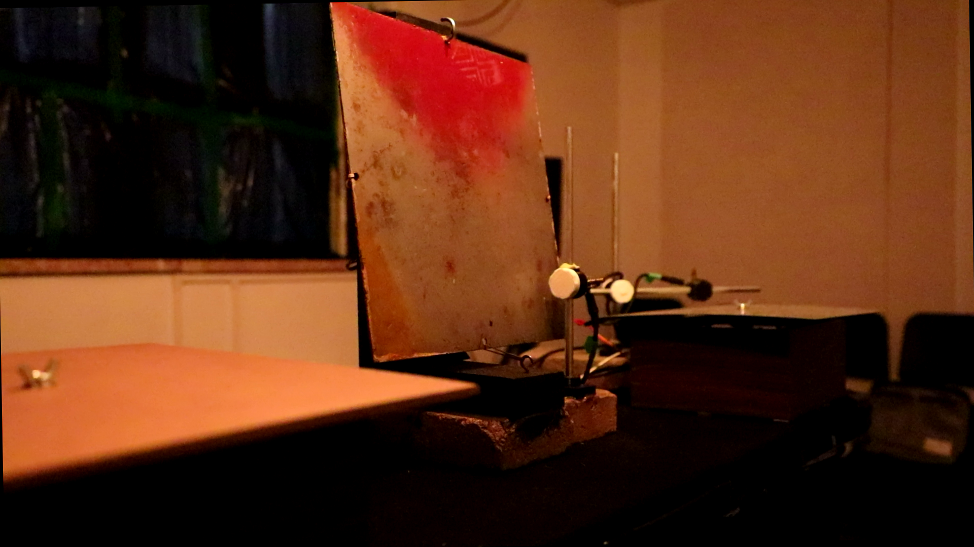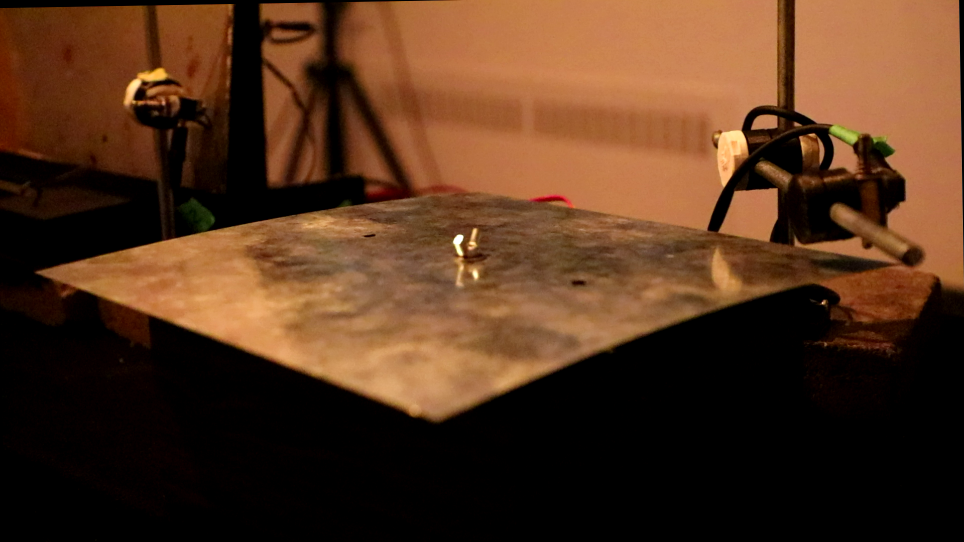In A Fragile Equilibrium, three DIY devices made with found and recycled materials are equipped with piezo microphones and old speaker drivers in a feedback loop. Orchestrated by simple software manipulations, the devices self-animate and produce sound, which is then amplified through a 4.1 speaker system. Other than some solenoid impacts, no exterior energy is given to the system, all of the resulting sound and articulation is produced in the closed loop.
